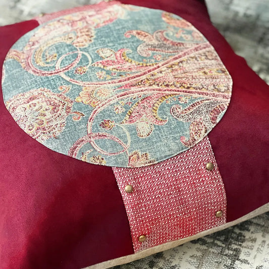 Burgundy Velvet Printed Circle pillow cover 20"