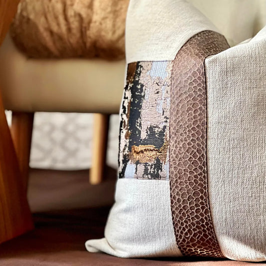 Tiziano Metallic Block with Faux Croc detail pillow cover 20"