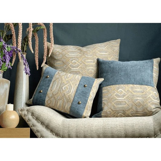 Tiziano Metallic Block with Faux Croc detail pillow cover 20"